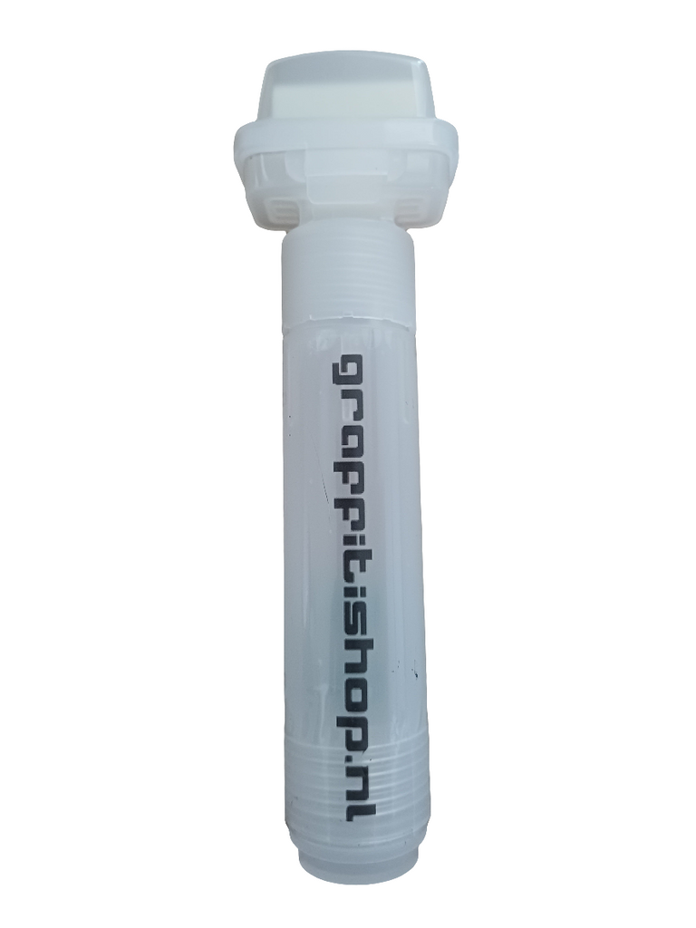 30 mm chisel tip pump marker. The marker is composed of a refillable empty body with mixing ball and the tip is replaceable. For big and clean tags!