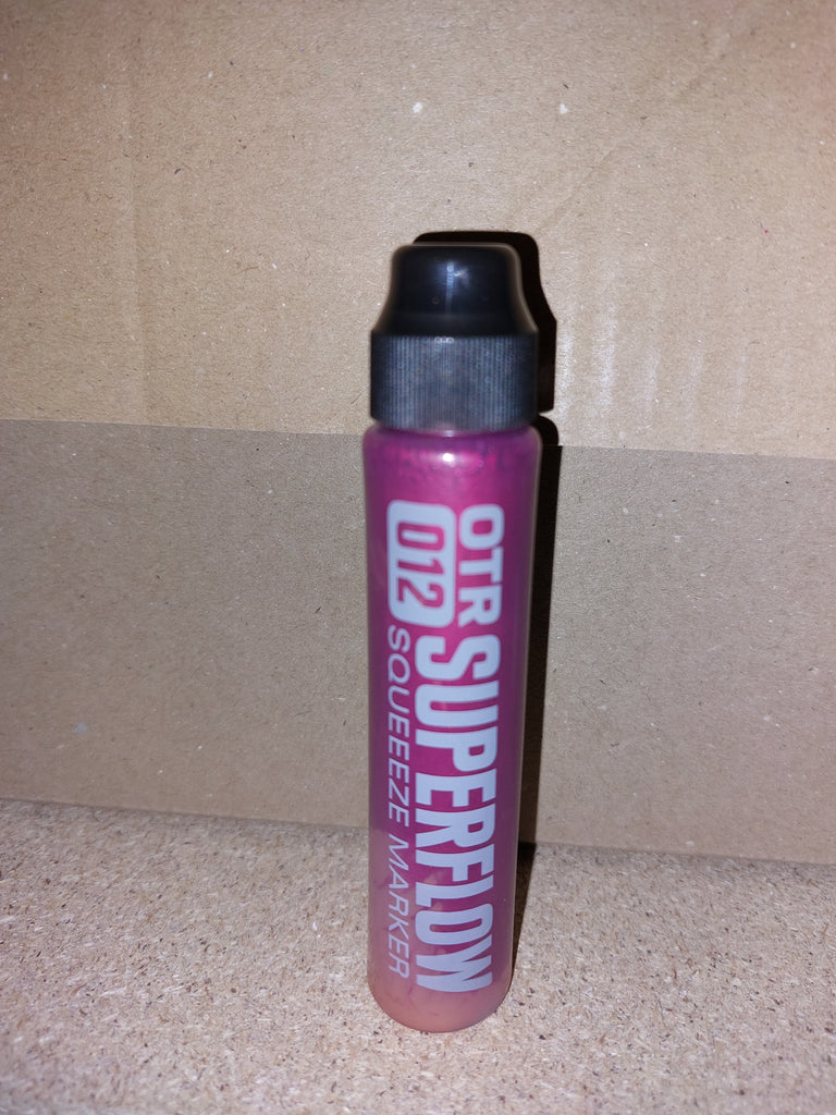 The new OTR.012 SUPERFLOW is a great tool for all street taggers. The squeeze marker combines the soft body of the famous OTR.005 for perfect flow-control with a very robust 10mm nylon round-tip; ideal for any writable surface, both rough and polished. Filled with 30ml alcohol-based black OTR permanent ink or colored 902 paint, the OTR.012 SUPERFLOW is a perfect pocket-marker for any day and night time mission. The new nylon-round tip offers a higher paint or ink flow than many other squeezemarkers and guarantees juicy drippy tags!