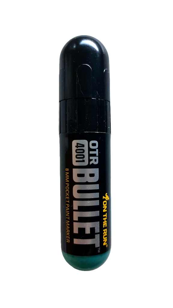 The OTR.4001 Bullet Marker is the newest pocket sized addition to the On the Run marker line. Equipped with a 8mm bullet point tip, and contains permanent, highly pigmented, glossy alcohol-based Soultip Paint, great for a wide variety of surfaces, including: metal, canvas, wood, plastic, glass, stone, leather, and much more.